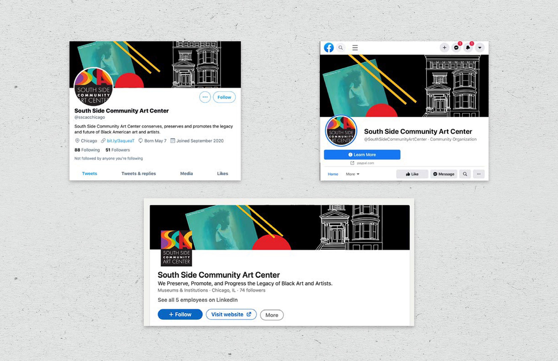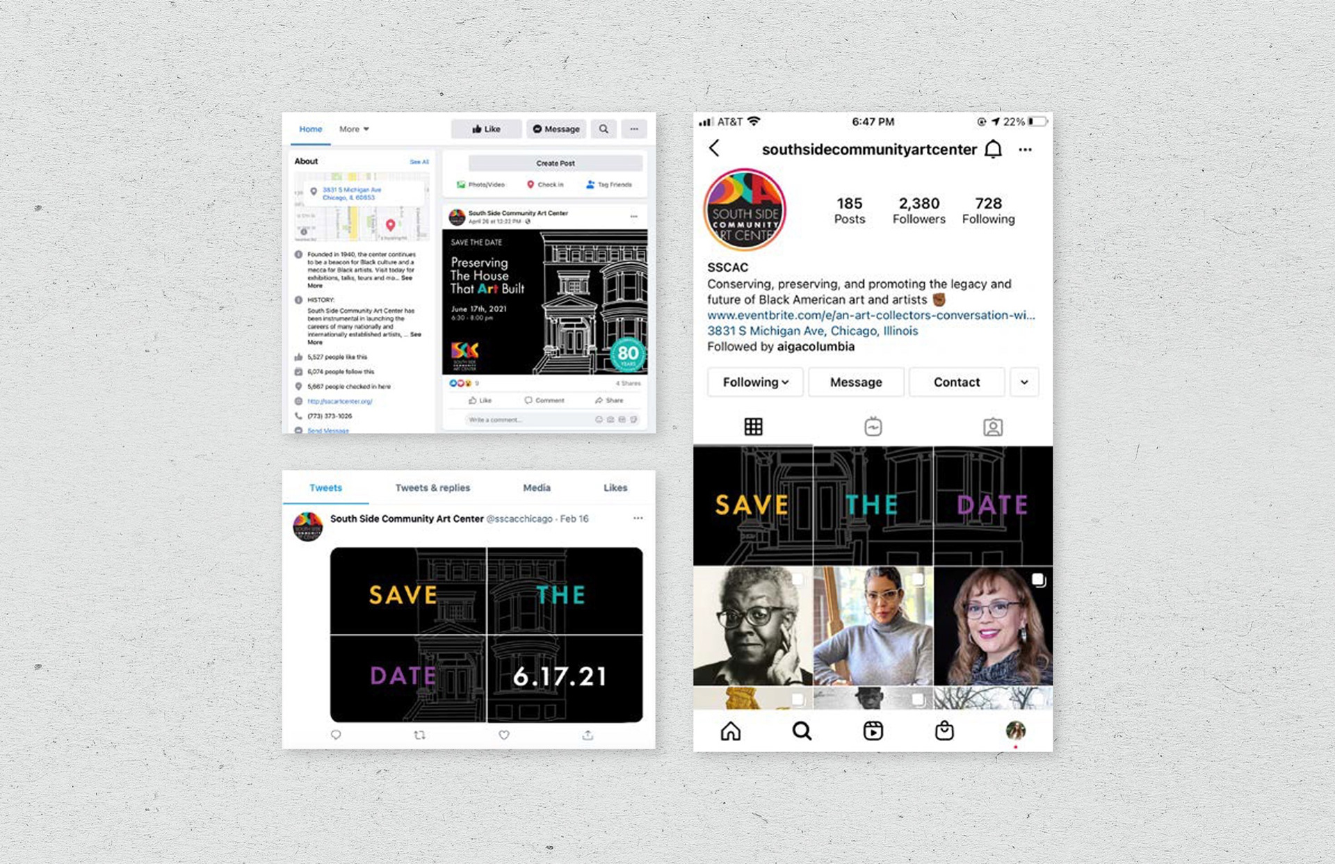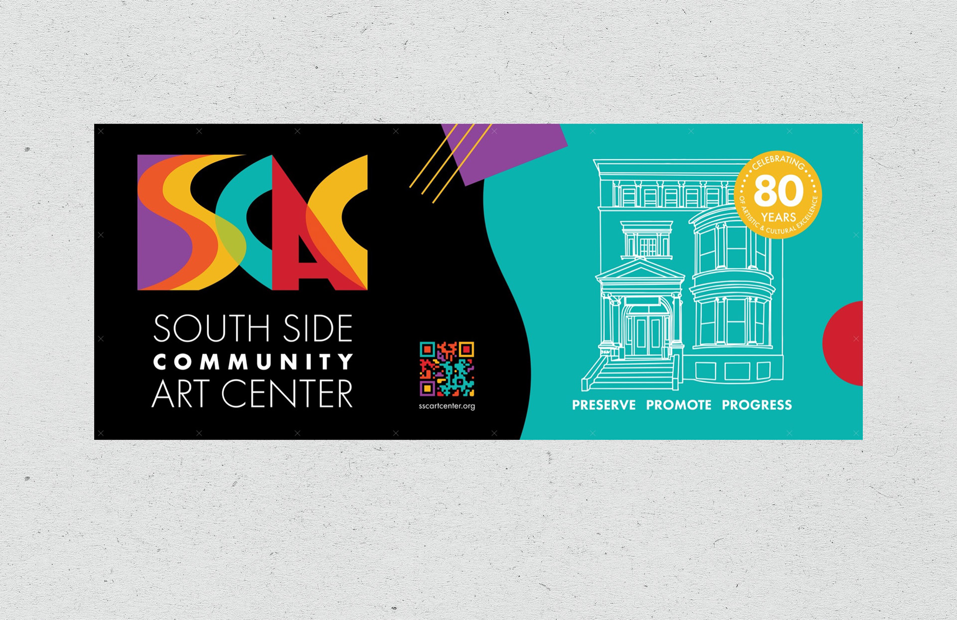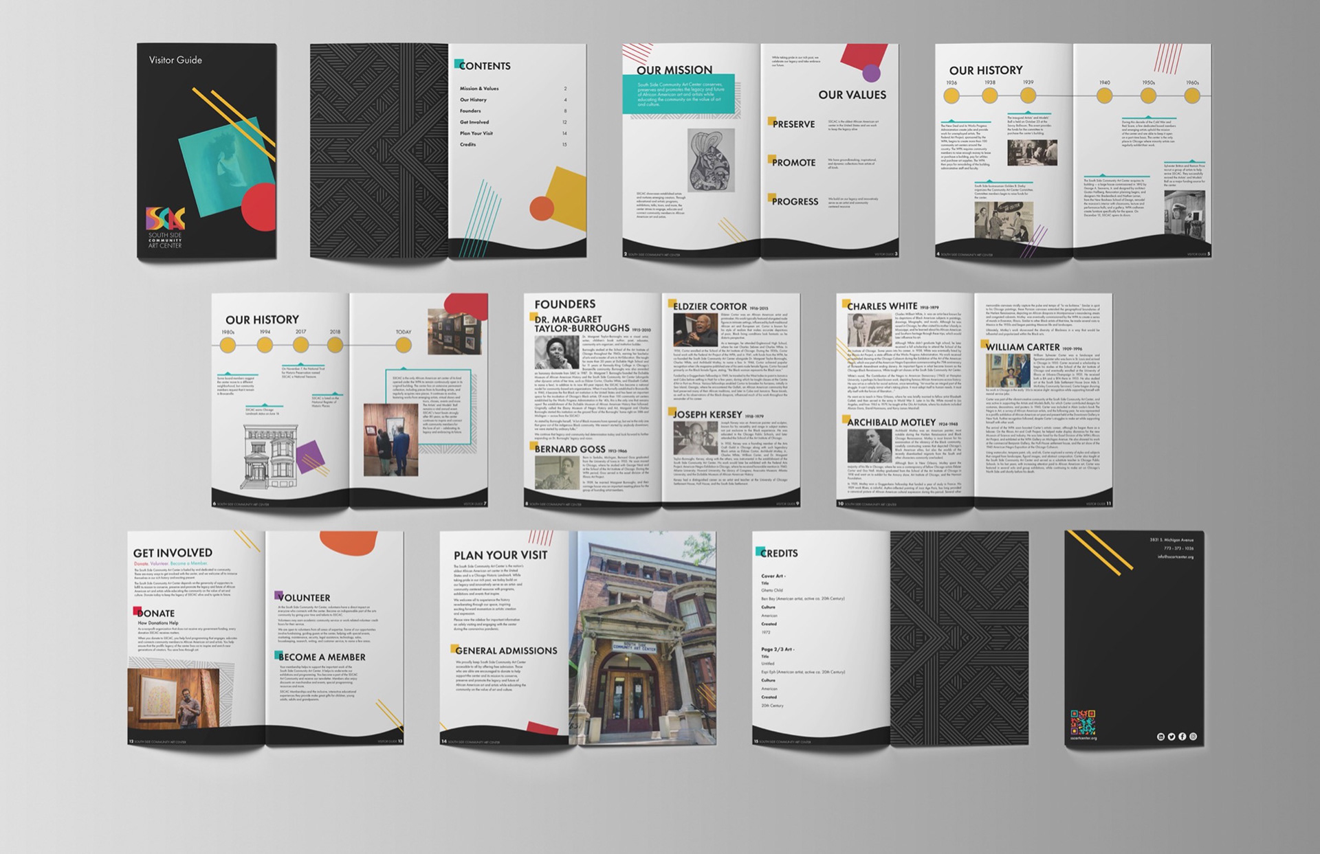 As part of my senior capstone at Columbia College Chicago, I collaborated with two classmates to develop an 80th anniversary campaign for the South Side Community Art Center. Our team was tasked with creating anniversary logo concepts, event banners, and a commemorative brochure highlighting the center’s rich history and cultural impact.