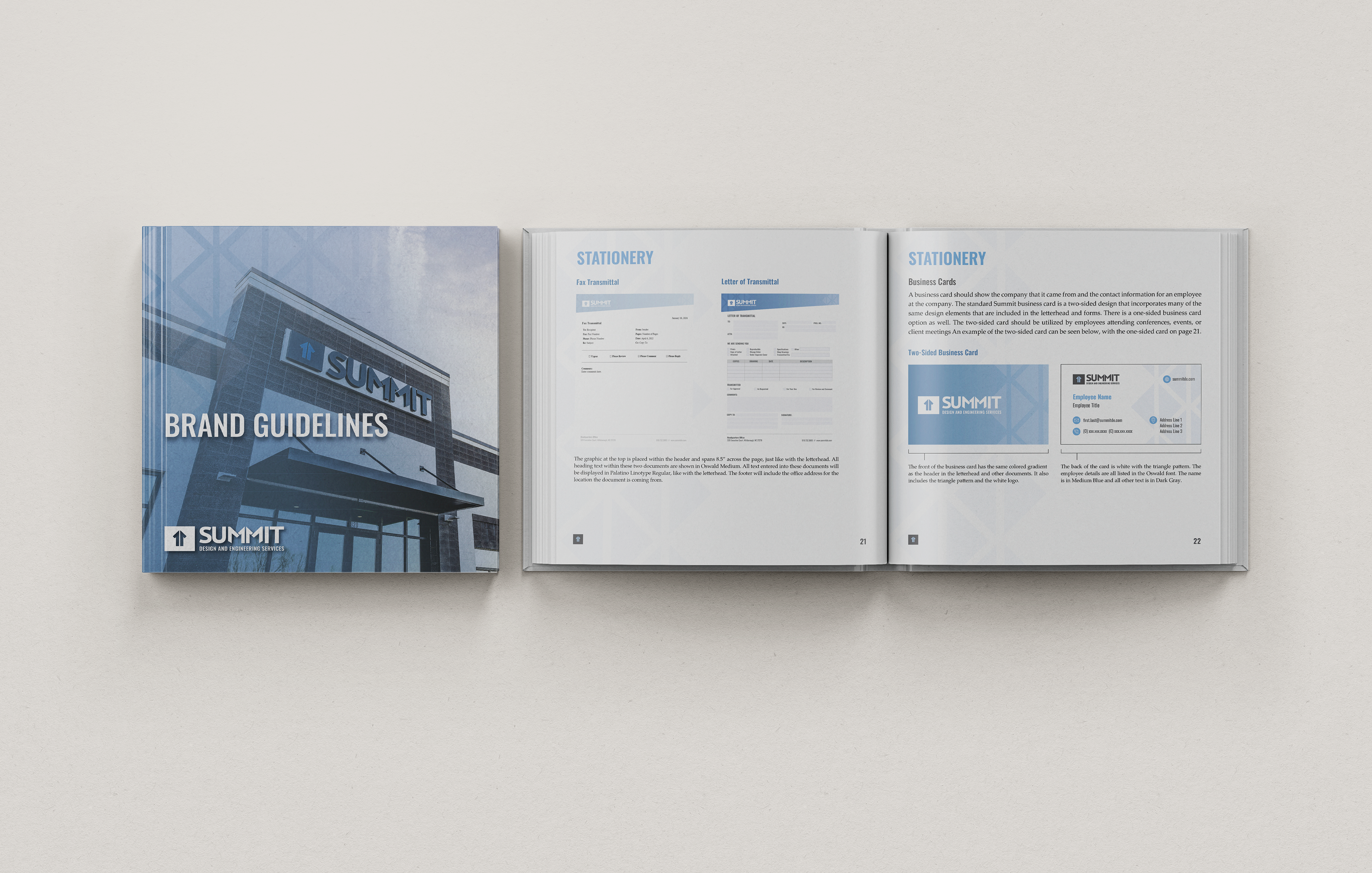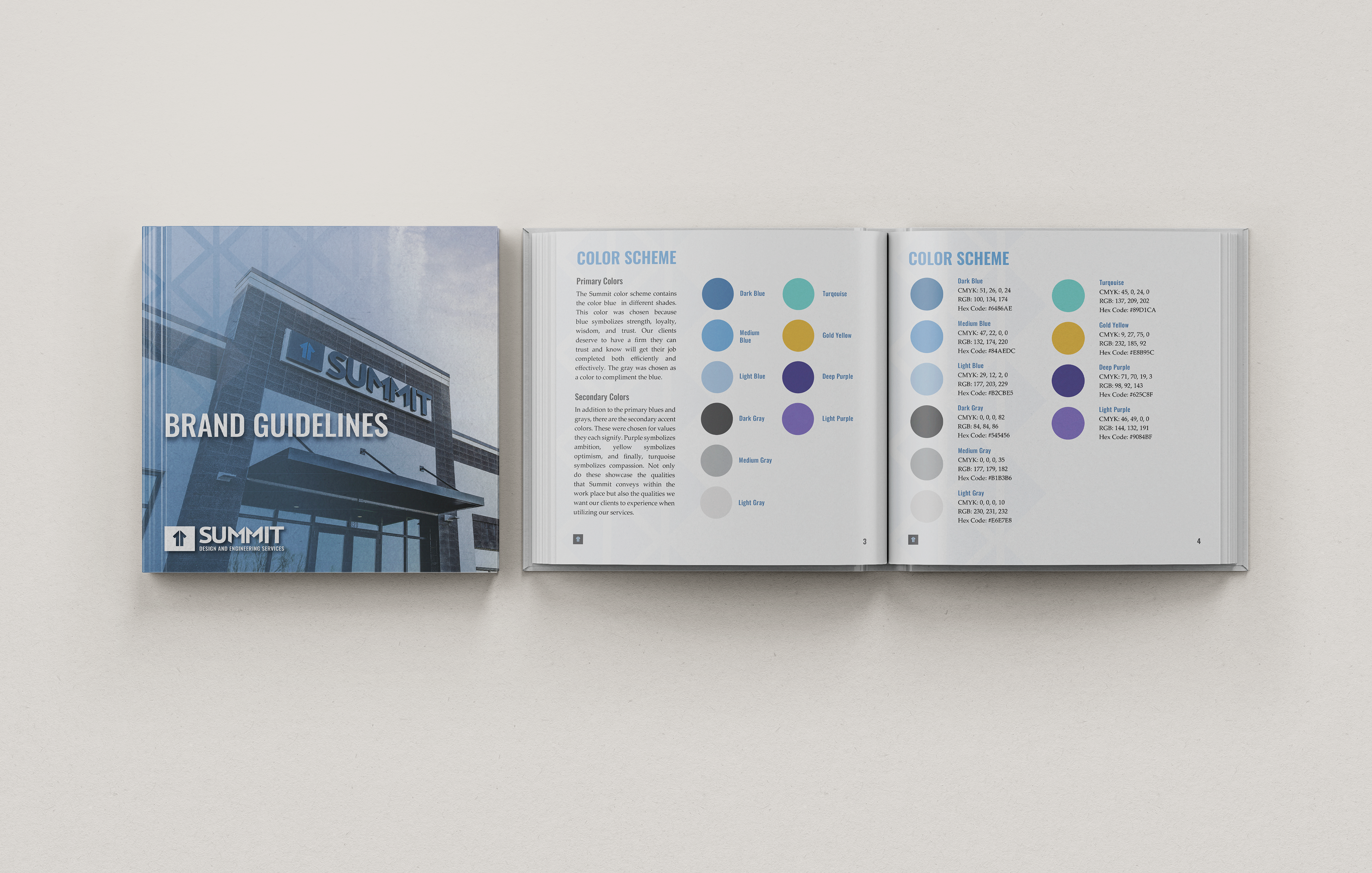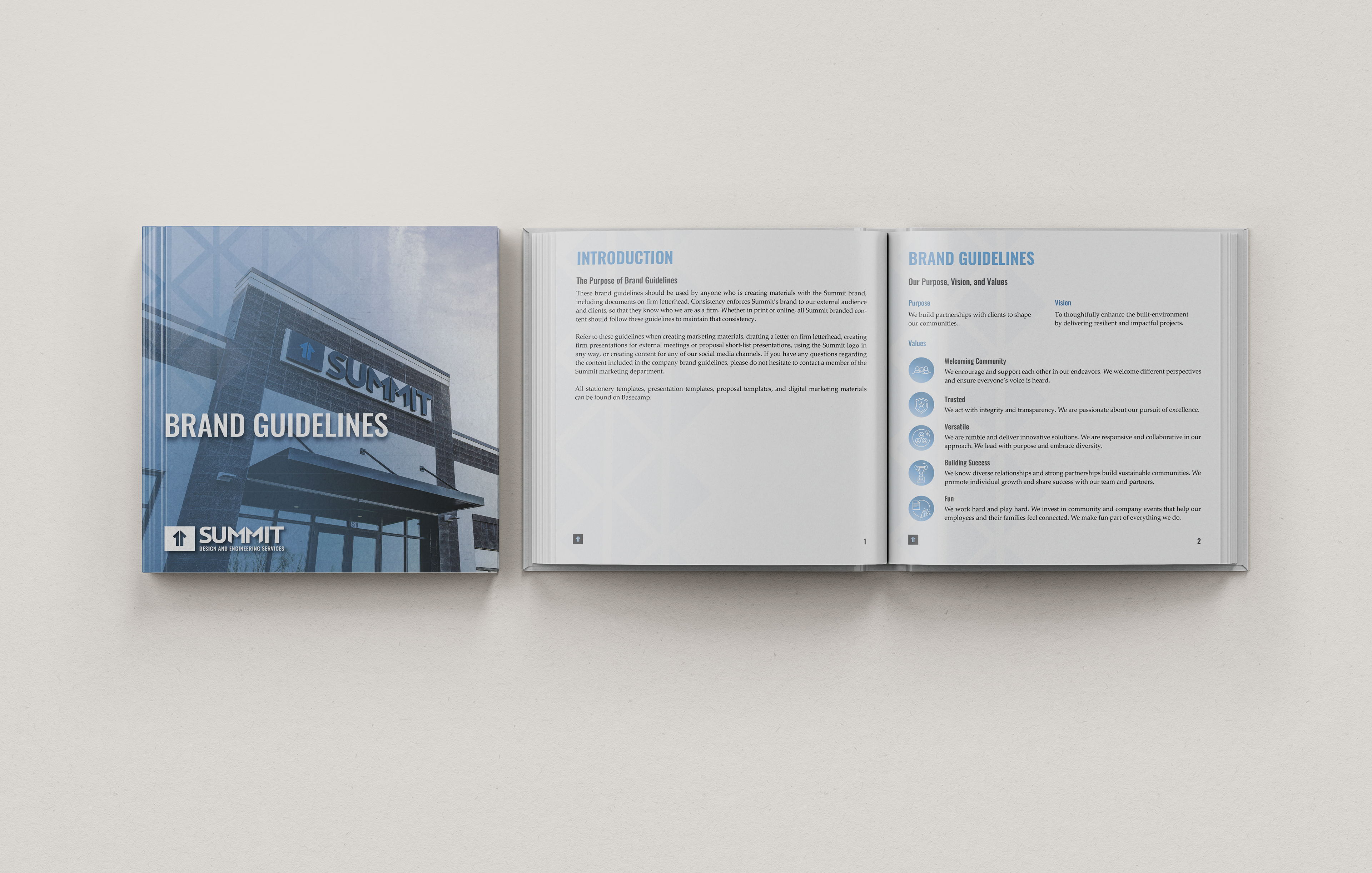 After joining Summit in 2021, I was entrusted with developing and implementing these updated brand elements. I introduced new visual styles and guidelines that are reflected in the booklet shown here, as well as across a range of branded materials. The result is a more flexible, modernized brand system that maintains recognition while enhancing consistency and scalability.