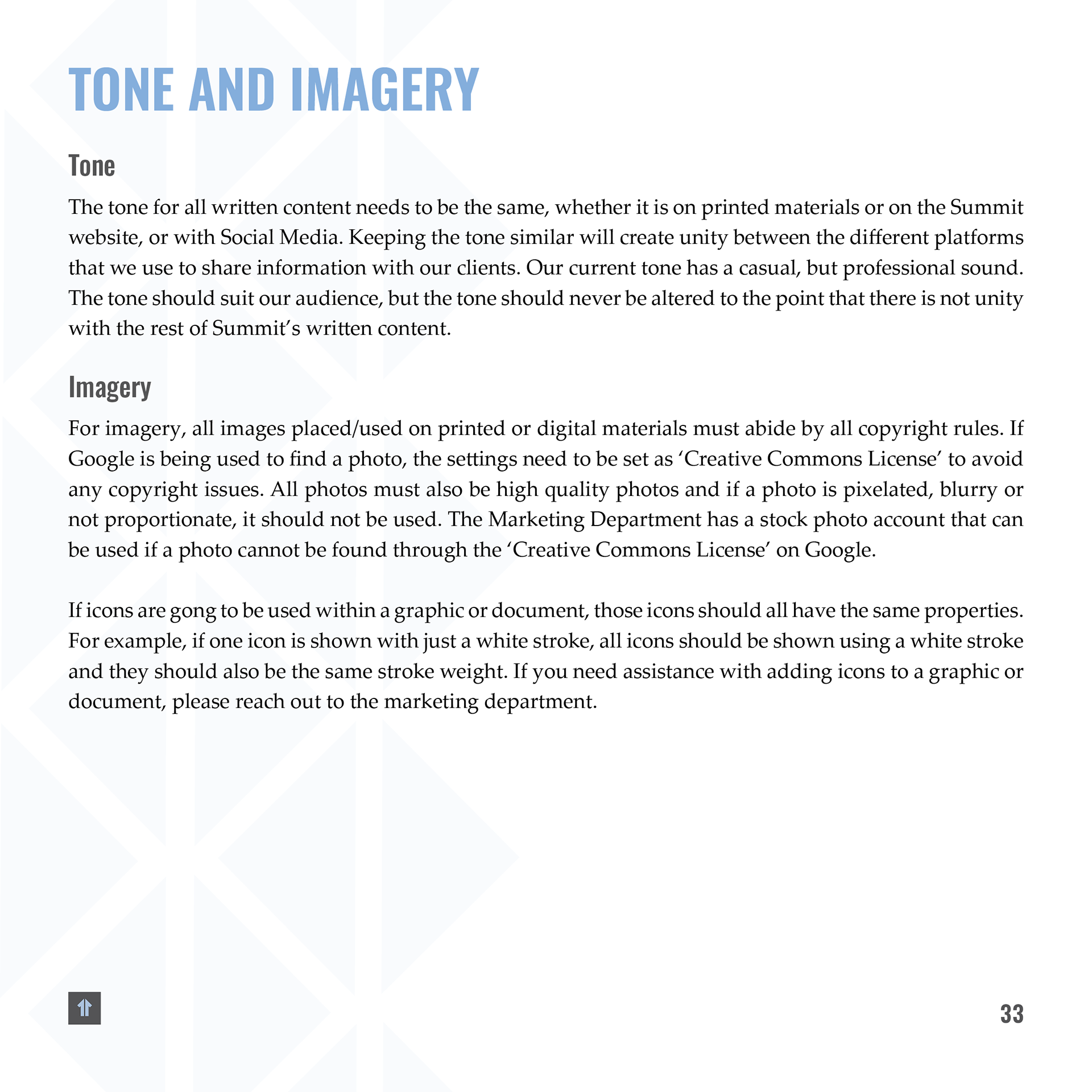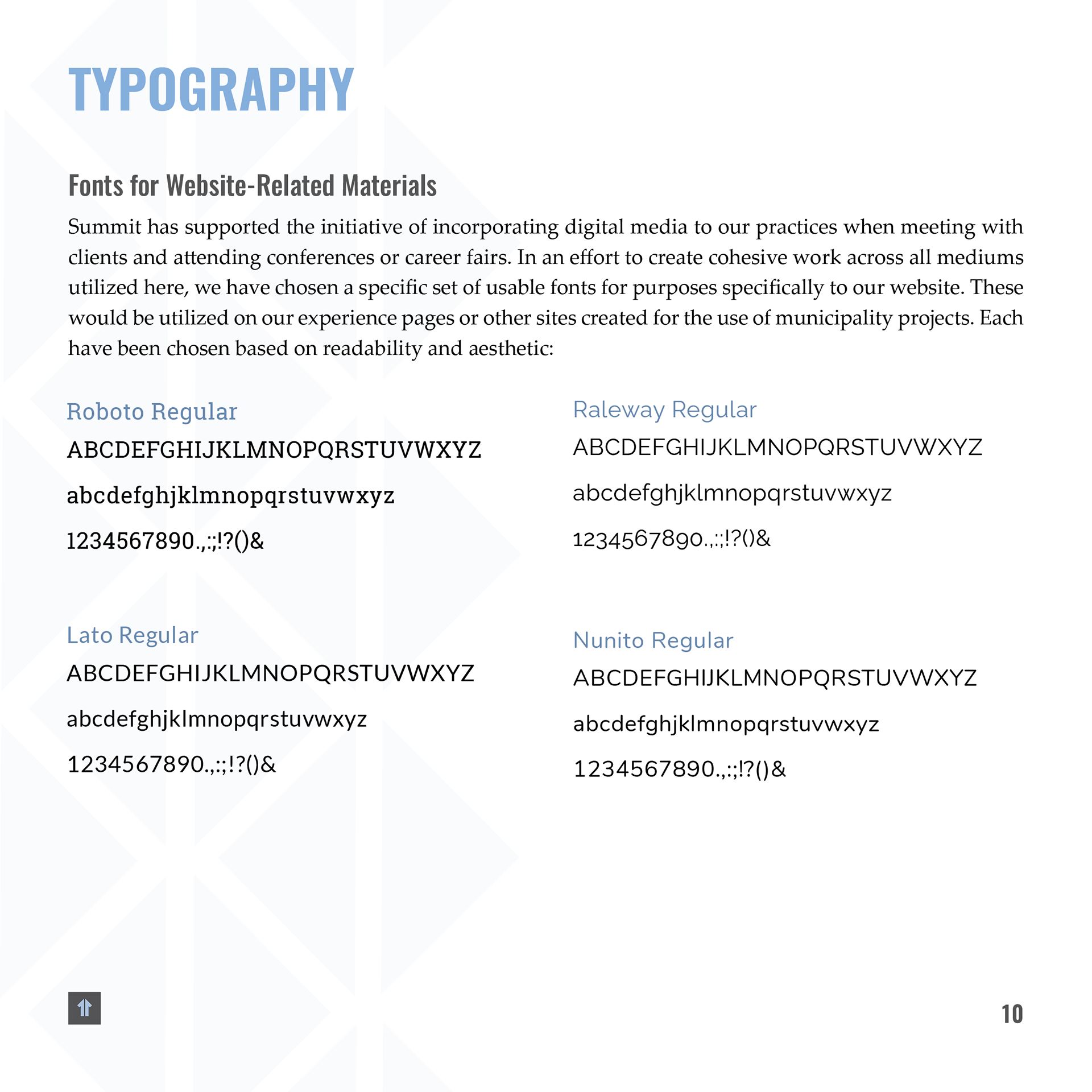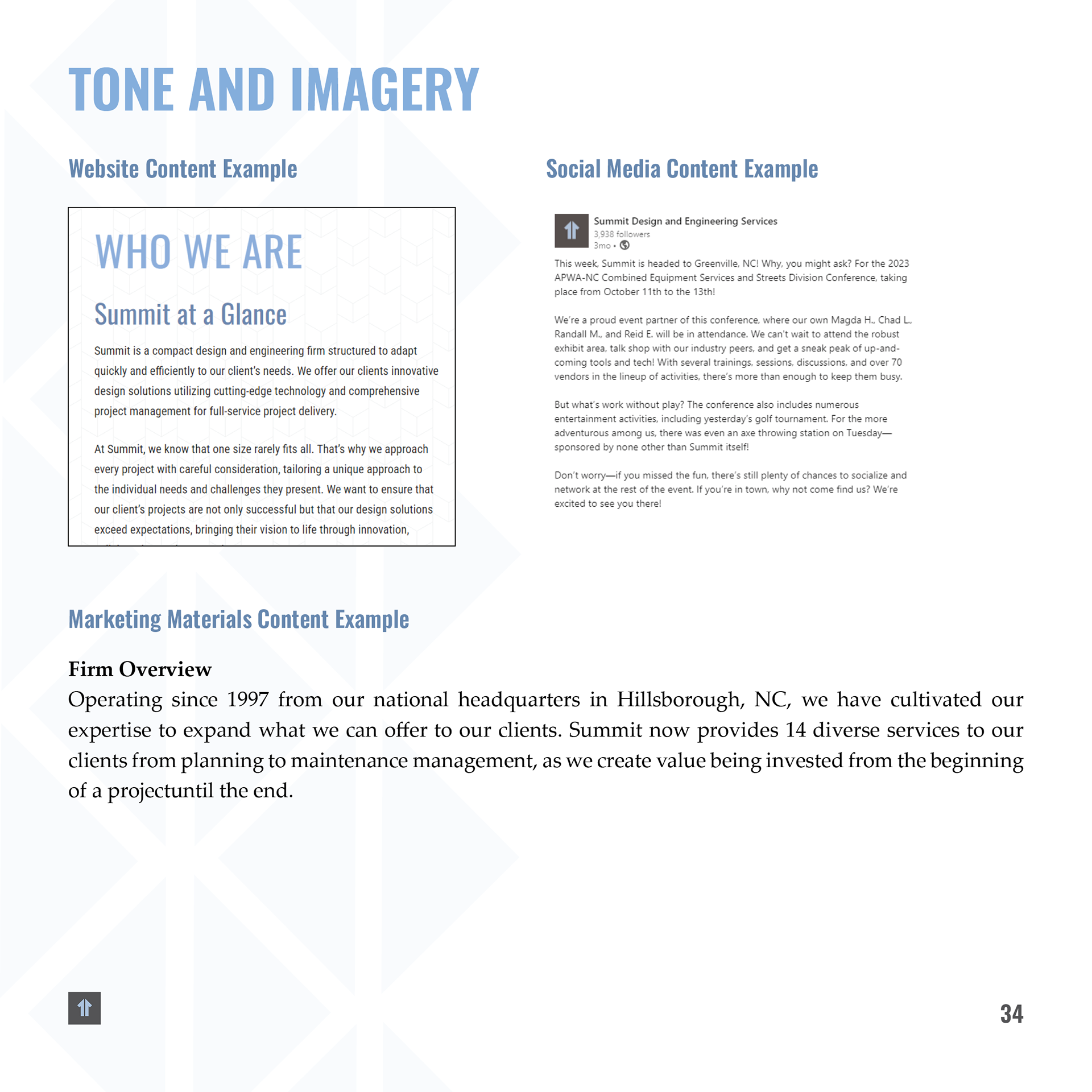 After joining Summit in 2021, I was entrusted with developing and implementing these updated brand elements. I introduced new visual styles and guidelines that are reflected in the booklet shown here, as well as across a range of branded materials. The result is a more flexible, modernized brand system that maintains recognition while enhancing consistency and scalability.