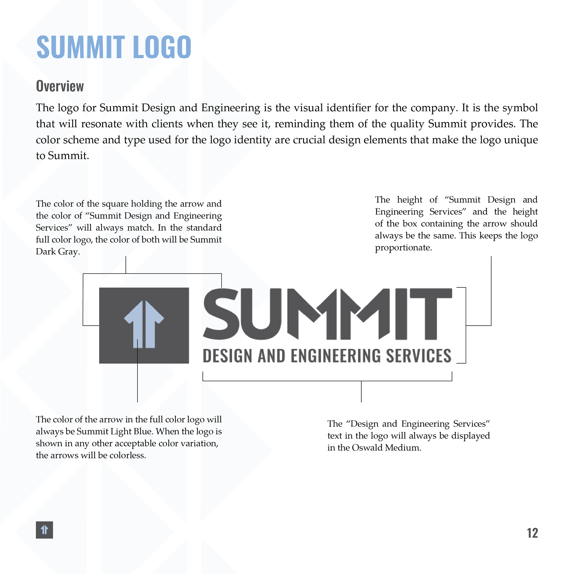My role in this project was to evolve Summit’s existing brand standards while maintaining the integrity of its established identity. The company chose to retain its current logo, as it continued to reflect their values and market presence, but they were ready for a thoughtful visual uplift.